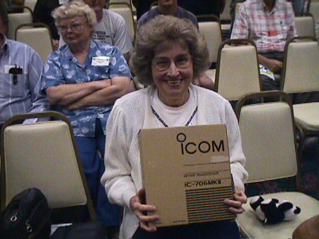 | Icom 706 MK II - Because someone failed to claim this hourly prize, this very happy lady carried it home from the Final Drawing.